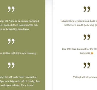 När du kommer till AG Vision möts du av mig, Anna. Jag är socionom med vidareutbildning inom psykoterapi och legitimerad Hälso- och sjukvårdskurator. Jag har mer än 20 års erfarenhet av att arbeta med terapi och stödsamtal.