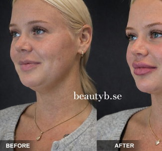 Behandlings område: käklinje, dubbelhaka, hals, kinder, nasolabialveck, marionettvinklar och områden runt ögonen, samt kolagenboost ansiktet. Effekten håller sig mellan 10-18 månader.