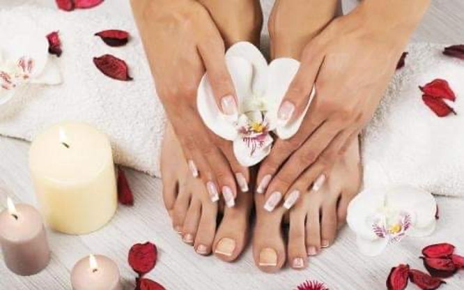 Fotbad,nagelvård,borttagning av förhårdnader,filning och insmörjning av fötter.