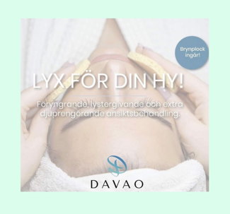 Lyx för din hy; föryngrande, lystergivande och extra djuprengörande behandling. Detta ingår: hudanalys, rengöring, enzym alt. scrub-peeling, rengöring av porer (portömning), anpassad mask, ögoncreme, serum, fuktgivande creme, solskyddsfaktor. Avslappnande massage av ansikte, axlar, nacke (och hårbotten för den som vill). Även kemisk peeling och plockning av bryn ingår (valfritt). Produkter anpassas till just din hudtyp och ev. problem.