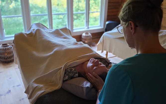 Din Clara stund ger tibetansk ansiktsmassage som är en djupgående och avslappnande massage. Massagen är i olika steg med uppmjukning av huden först, därefter en djupare massage i ansikte, hals, nacke, huvud och hårbotten. Denna massage minskar effektivt på spänningar, och kan även leda till minskade besvär av huvudvärk, migrän, käkproblem, stressymtom och stelhet kring nacke och hals. Nästa steg i massagen är tryck på de olika akupressurpunkterna bak på huvudet och i ansiktet vilket påverkar kroppens meridiansystem (osynliga energikanaler i kroppen) Massagen kallas också för facelift-massage, då den minskar på stress- och bekymmersrynkor och ger ansiktet ny lyster och elasticitet. Oljorna jag använder är helt naturliga, välgörande och ekologiska. Jag avslutar med en lättare hand och fotmassage.