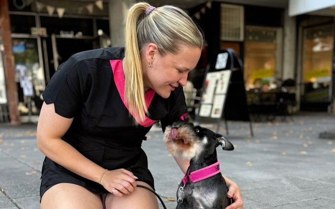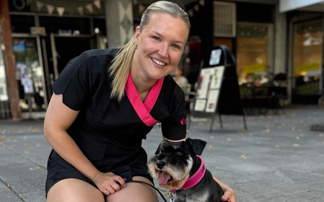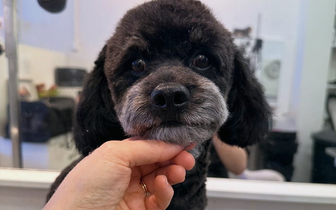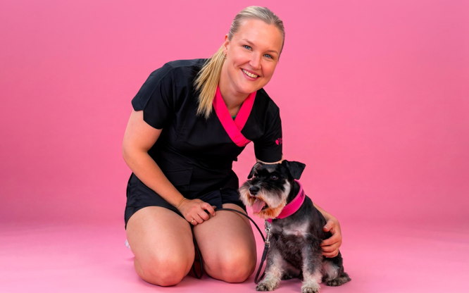 Jag köpte min första egna hund, en dvärgschnauzer, år 2014. Jag skulle bara ha en hund till sällskap, men det ändrades snabbt efter att jag följde med min uppfödare på en utställning. Strax därefter flyttade min andra dvärgschnauzer hem till oss och jag började bli intresserad av pälsvård, utställningar och allt som hör till på riktigt. Nu har jag tre dvärgschanuzers och många år med utställningar, tävlingar i rallylydnad och viltspår har passerat. Jag har alltid älskat djur och min dröm har alltid varit att få jobba med hundar. Därför gick jag en hundskötarutbildning under år 2015-2016, och min utbildning till hundfrisör har jag fått genom att gå som lärling bredvid Sophie på Hilfies Hundvård under 1,5 år. Därefter har jag trimmat andras och mina egna hundar hemma under några år fram till 2023 då jag startade mitt egna företag och började arbeta hos Trimtrion i Blackeberg.