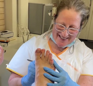 Lasern kan behandla eller lindra hälsporre, inflammationer, hallux valgus, vårtor, svamp, ppp, mm. Detta görs i samband med ordinarie fotbehandling, som inleds av ett skönt fotbad, därefter klipps och filas naglarna. Borttagning av ev förhordnader och liktornar, hudsprickor behandlas.