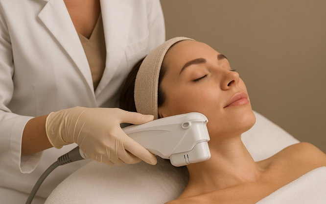 Ultraljudsbehandling: Under själva behandlingen, använder en enhet ultraljudsvågor som är riktade mot de djupa hudlagren. Vågorna värmer upp vävnaden och stimulerar produktionen av kollagen och elastin. Det kan kännas som en värme eller en lätt stickande känsla på huden.