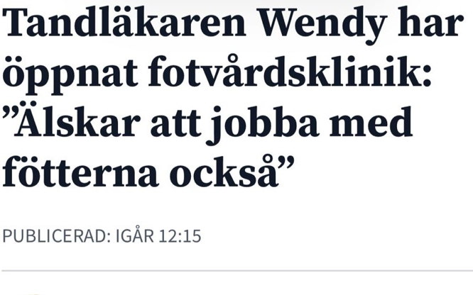 En lyxig behandling som lämnar fötterna mjuka och fina, en riktigt avslappnad, börjar med ett avkopplande fotbad, därefter nagelvård, borttagning av ev. förhårdnader, liktornar, eller liknande, fötterna får en skön peeling och inpackning. Handmassage medan inpackningen verkar på fötterna. Avslutas med en skön fotmassage och nagellack. Du får även ta med dig lacket hem. OBS!! kan ej bokas som friskvård!