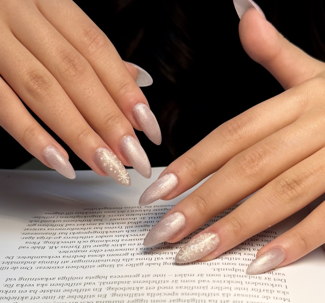 Förlängning av naglarna där vi använder en lätt rosa gelé eller lackar naglarna i en färg.