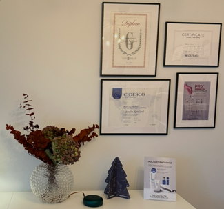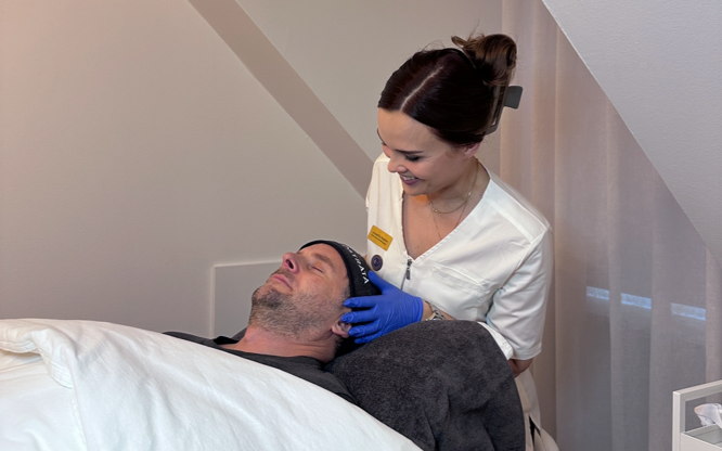 Rengöring, hudanalys, AHA peeling, portömning, lätt ansiktsmassage, mask, avslutande produkter och produktrekommendation.