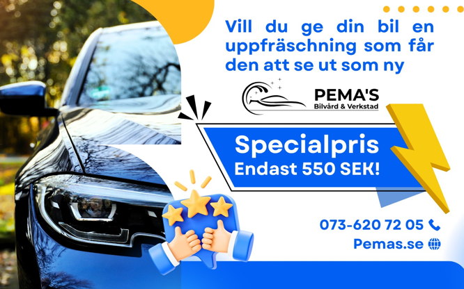 Vår Extra Supertvätt erbjuder en komplett service med utvändig avspolning, schamponering och fälgrengöring, kombinerat med invändig dammsugning, spolning av mattor, panelrengöring och fönsterputs. Vi tar bort insekter, motverkar salt och asfalt med extra kallavfettning, och avslutar med torkning samt rengöring av dörrgångar. Perfekt för en bil som ska kännas som ny! (Ca 60-90 min)