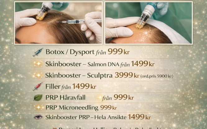- *Behandlingssession*: Tar vanligtvis mellan 30-90 minuter beroende på det behandlade området.