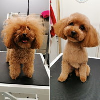 Uppfödare av pudel sedan 2011. Jag har klippt rasen till utställning och vardags sedan dess. Tidigare har jag jobbat som hundfrisör i umeå 5år. Jag bestämde mig för att öppna eget i maj 2024 då vi startade upp vårat jordbruk i Västra Spöland, för att lättare kunna kombinera jordbruket med hundklippningar.