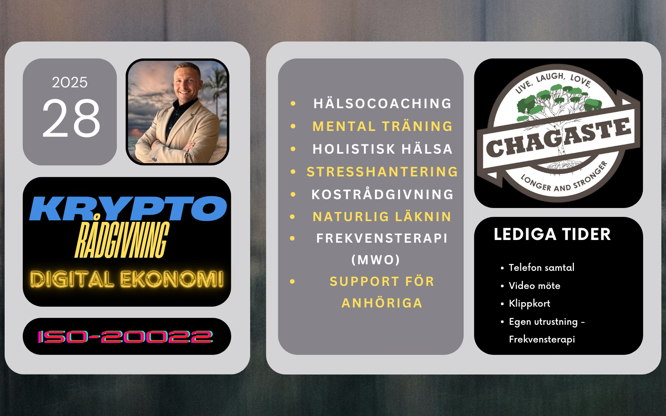 Kryptocoaching: Vi guidar dig in i framtidens ekonomi genom att ge dig kunskap om kryptovalutor. Med personlig vägledning hjälper vi dig att förstå grunderna, göra trygga investeringar och skydda dina tillgångar.