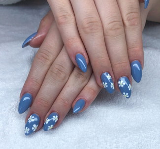 Vi förlänger naglarna med tippar och stärker dom med gele sedan designas dom med antingen fransk manikyr eller en enklare design 1-3 naglar